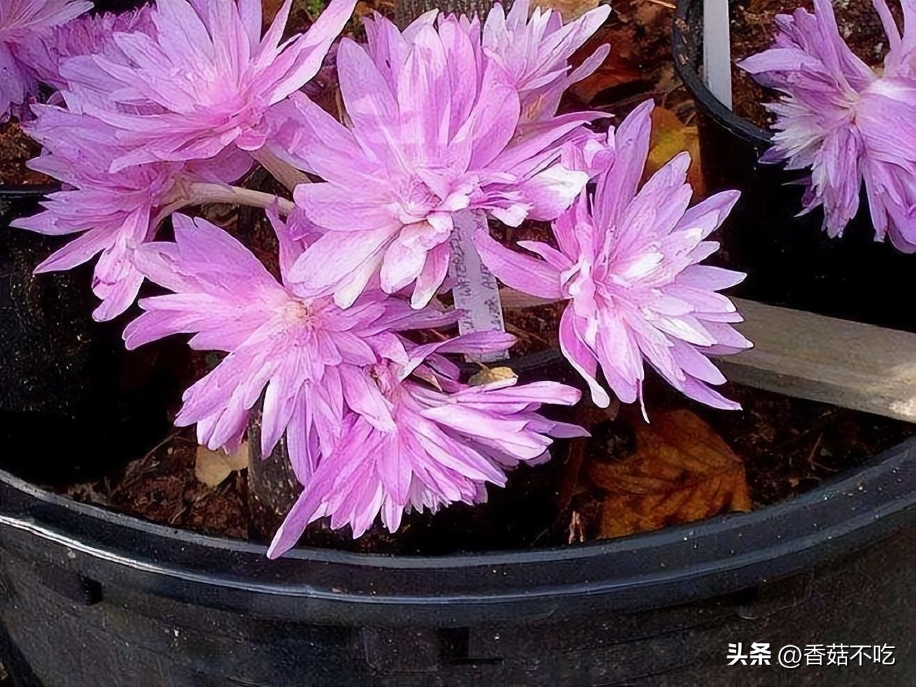 虽然它开花很美丽,仙气十足,但是不要养在室内,因为它的球茎和叶片里面,含有一种叫做秋水仙碱的汁液,是有毒的,所以不能养在家中。