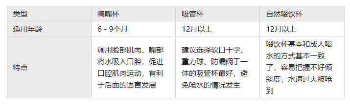 目前市面上的学饮杯类型有鸭嘴杯,吸管杯,自然啜饮杯等几种类型,不排除有部分孩子能毫无障碍的直接从奶瓶过渡到杯子,但是绝大多数孩子来说还是需要学饮杯过渡,先来看看这三种类型的学饮杯对比区别如下: