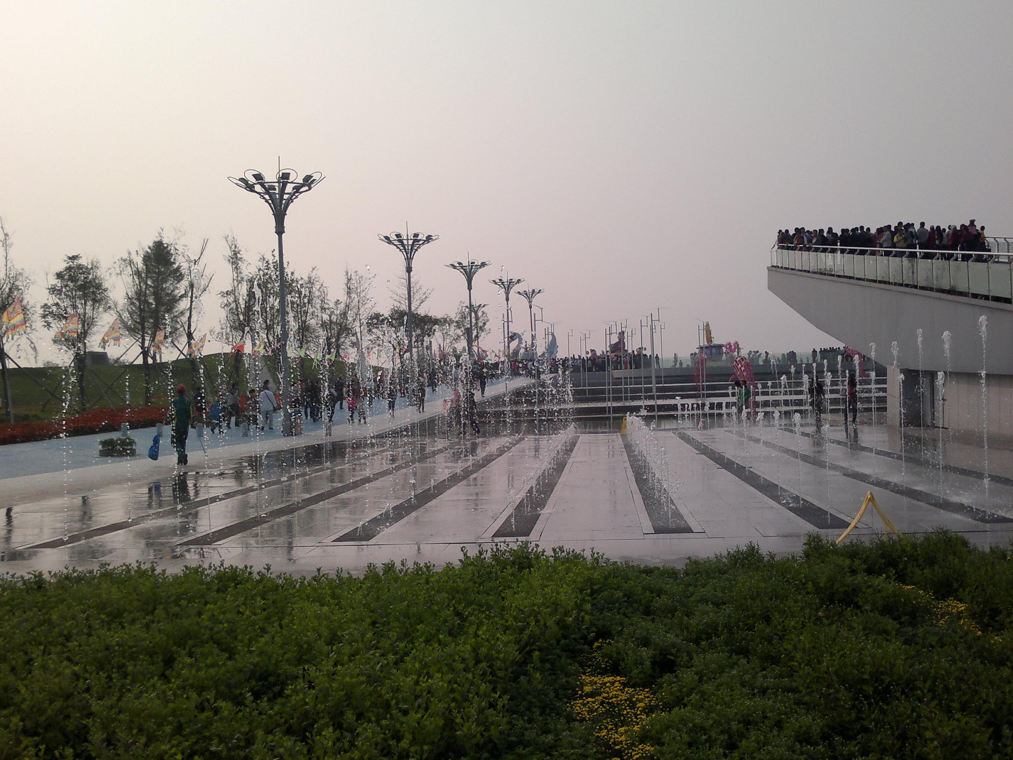 喷泉也是随处可见,虽然是十月份,但是锦州白天也是很热的。
