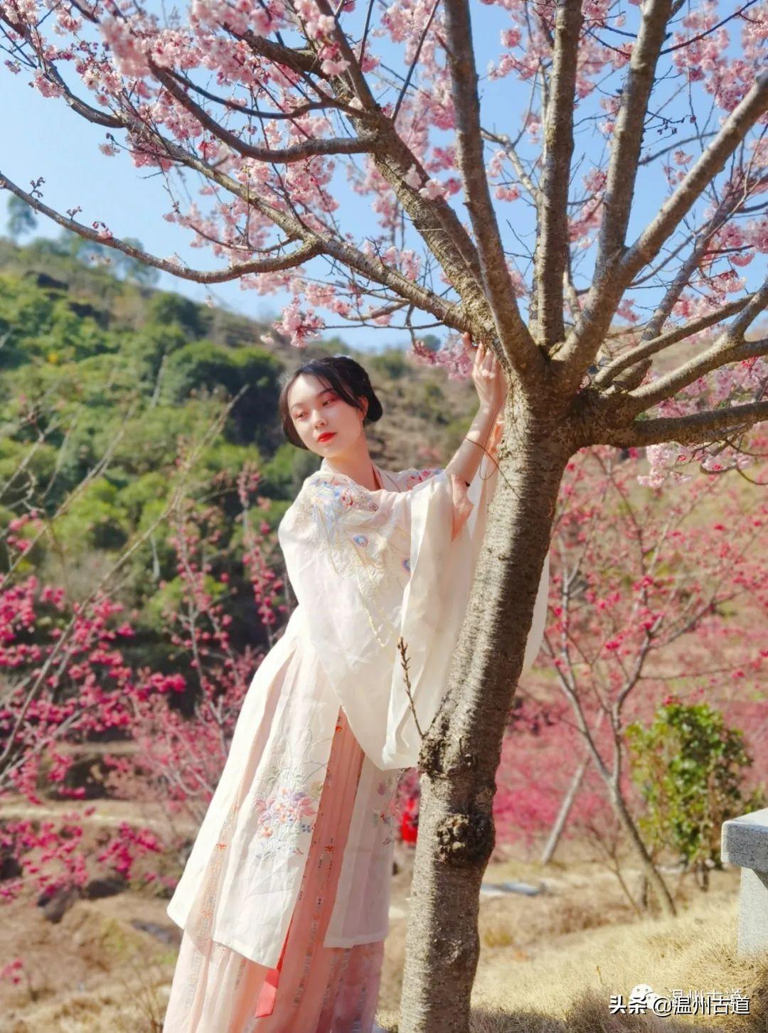 很多小哥哥小姐姐身着汉服行走在在樱花园里,随行伙伴用镜头记录下浪漫时刻。无论何种装扮,樱花园带给你的都是对美好的向往和满足。偶遇来自乐清的旅拍爱好者“桃夭”,她和友人正在进行摄影创作,留下惊艳时光的瞬间。