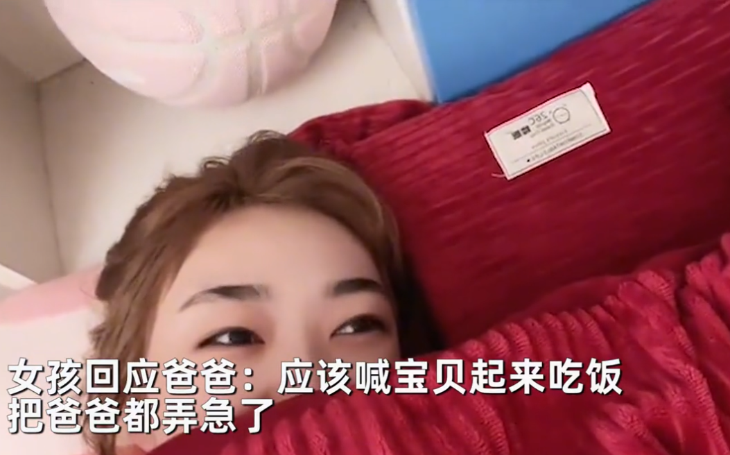 不料女生听到爸爸的话后,非得不从而且胆敢“顶嘴”,竟然不紧不慢地朝着老爸喊话:“应该喊宝贝起来吃饭了。”结果女生这句话一出口,瞬间把爸爸都惹急了,站在门外又是一阵怒吼,屋顶都快被掀翻了,把女生听得偷偷笑了起来。